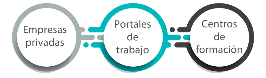 En este tipo de bolsas existen tres subtipos: las empresas privadas, portales de trabajo y centros de formación.